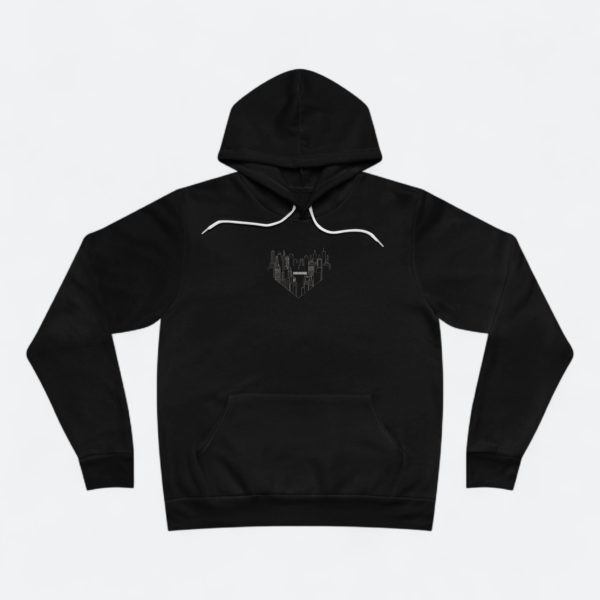 This is the city stripped down to its rhythm. Fine-line architectural details trace a familiar skyline, unified into a single heart. It’s a quiet, geometric tribute to the places that move us—sharp enough for a gallery, soft enough for a night in.