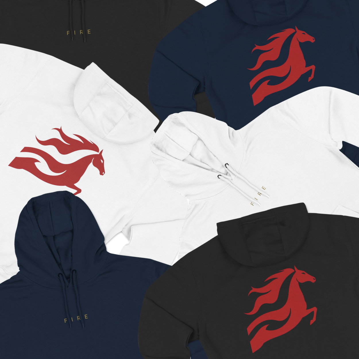 Up front, the small FIRE text sits close to the chest — quiet, direct, intentional.