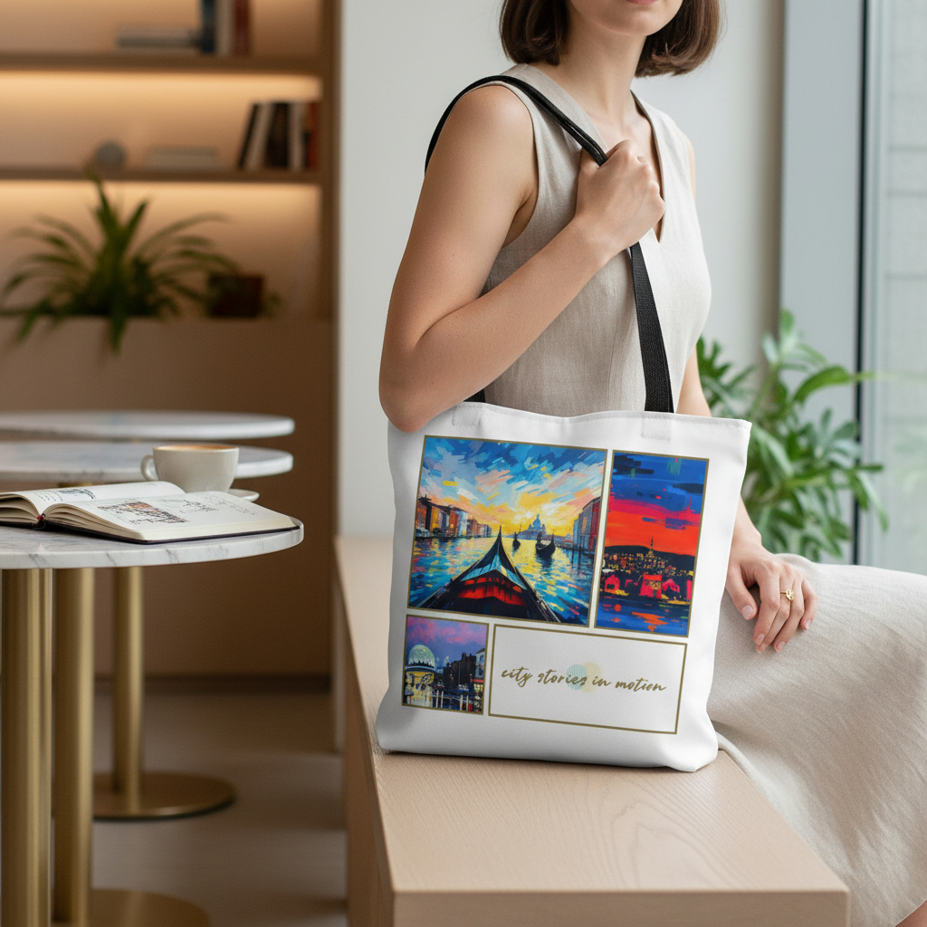 The Cities of Love Gallery Tote is designed like a moving art piece — something you live with, not just store away. For those who feel connected to more than one place, more than one version of home.