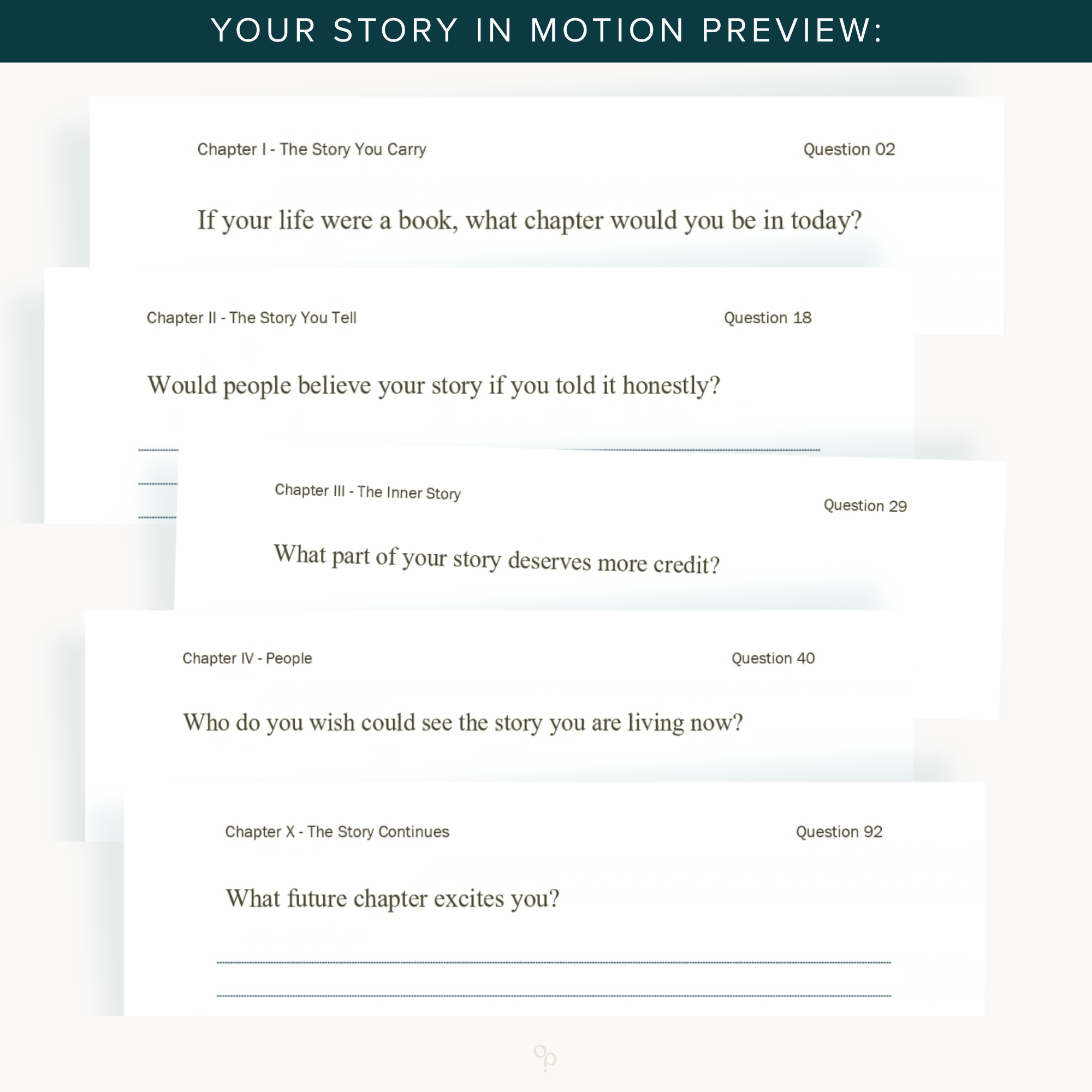 Your Story in Motion is a guided reflection journal created for thoughtful writing and personal discovery.